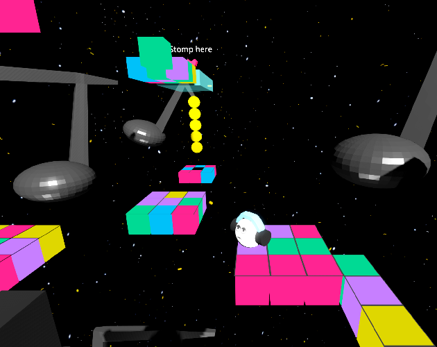 Controls: WASD or arrows to move. Space to jump. Space in the air to stomp. ESC to pause.
